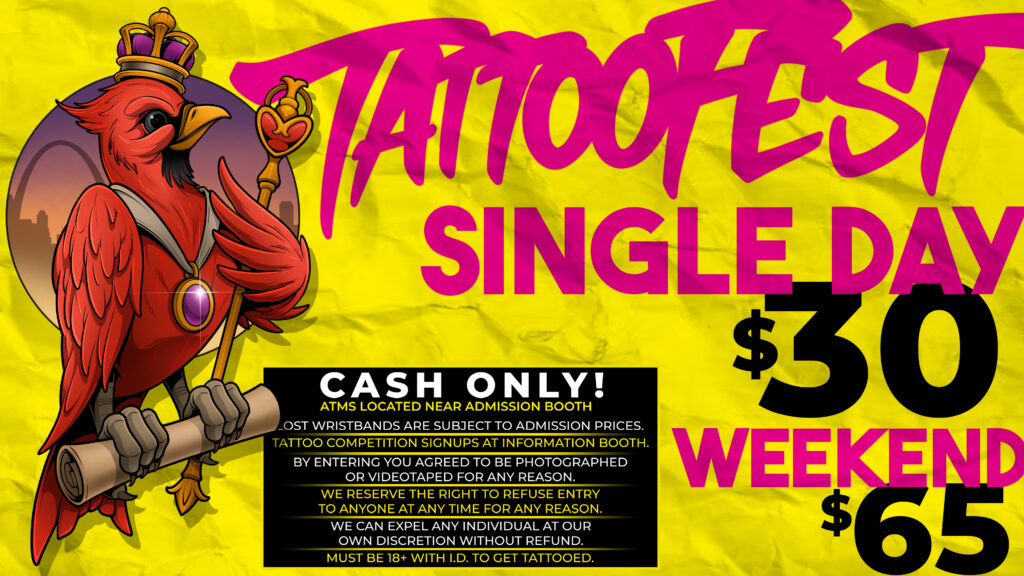 TICKETS TICKETS AVAILABLE AT THE DOOR. CASH ONLY. ATM ON SITE. See you at Tattoo Fest St. Louis in 2026